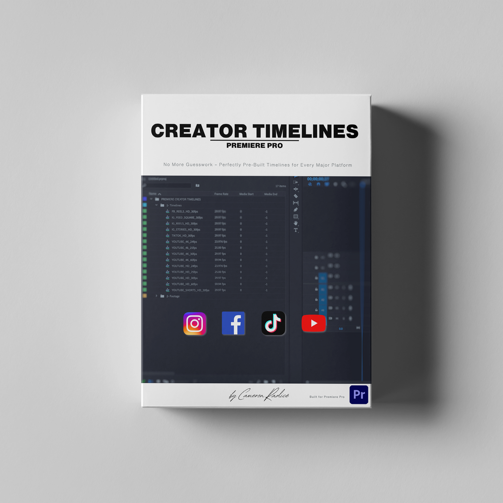 This Premiere Pro Timeline Pack gives you ready to use, optimized sequences for Instagram, YouTube, TikTok, and more.